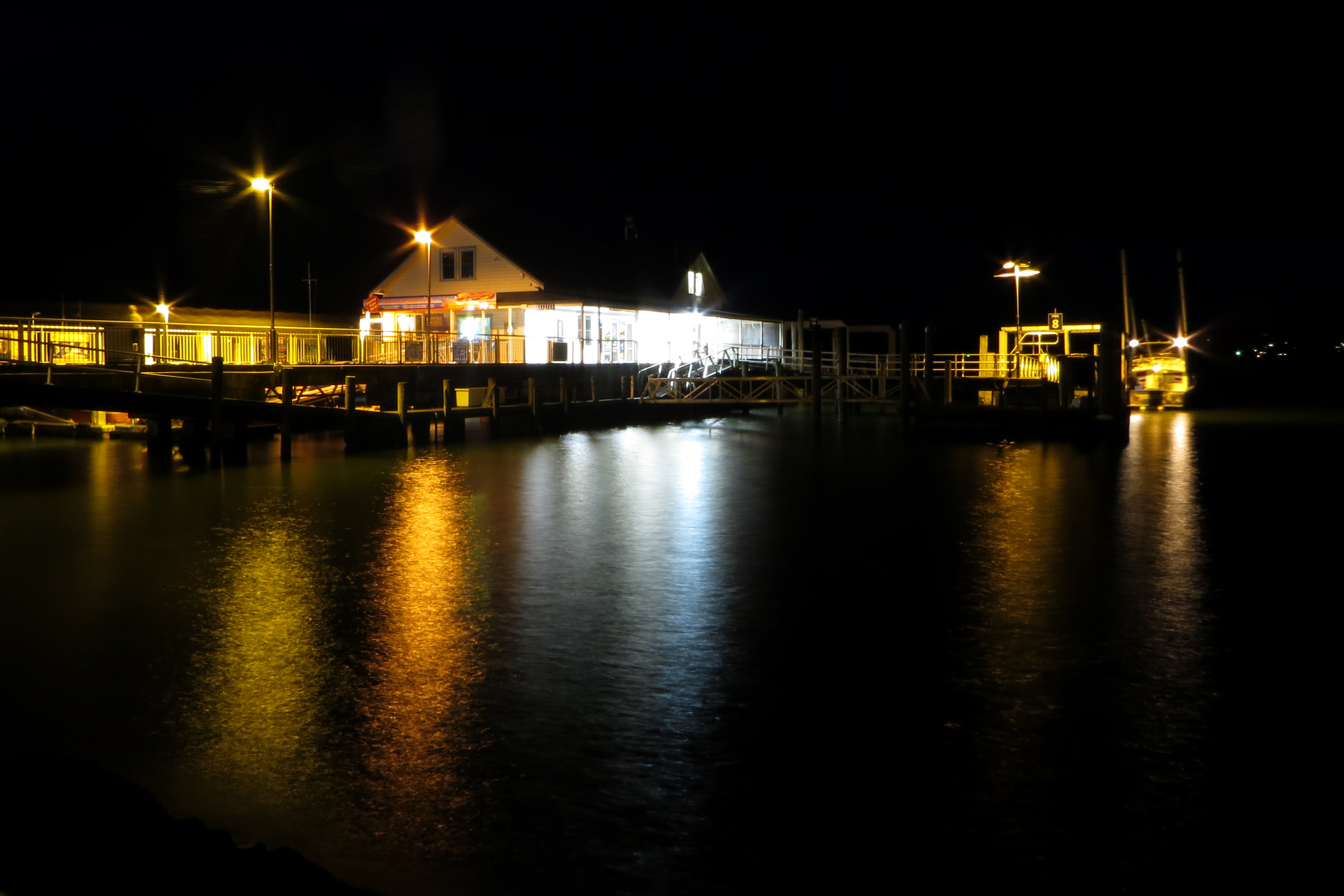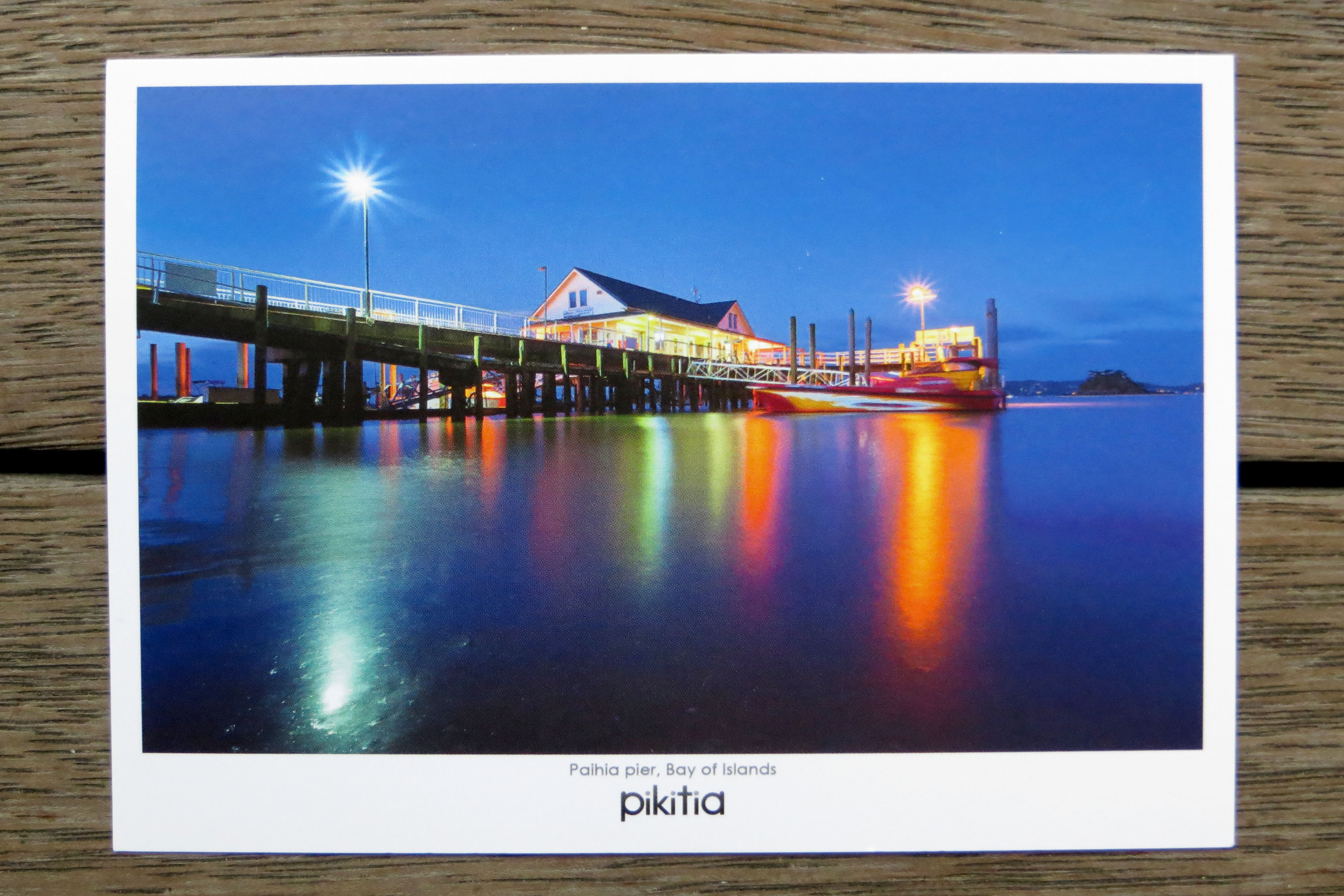 Abgesehen von der historischen Bedeutung der Gegend (hier wurde der erste Vertrag zwischen Maori und Europäern unterzeichnet) besaß der Ort einen beeindruckenden Strand. Es schien als bestehe er nur aus diesem und den Häusern entlang der Straße. Während meiner paar Tage dort sah ich den Vollmond über dem Meer aufgehen und spazierte mindestens zwei Mal am Tag barfuß am Ufer entlang. Kaum verwunderlich, dass es der örtlich Pier auf die touristischen Postkarten geschafft hat. Ich versuchte die genaue Perspektive wiederzufinden, doch musste ich feststellen, dass der Postkarten-Fotograf das Bild wohl unter dem Pier auf einem Boot oder bei Ebbe aufgenommen haben musste. So begnügte ich mich mit einem leicht verschobenen Blickwinkel und fotografierte den Pier nicht während der blauen Stunde, sondern mitten in der dunklen Nacht.