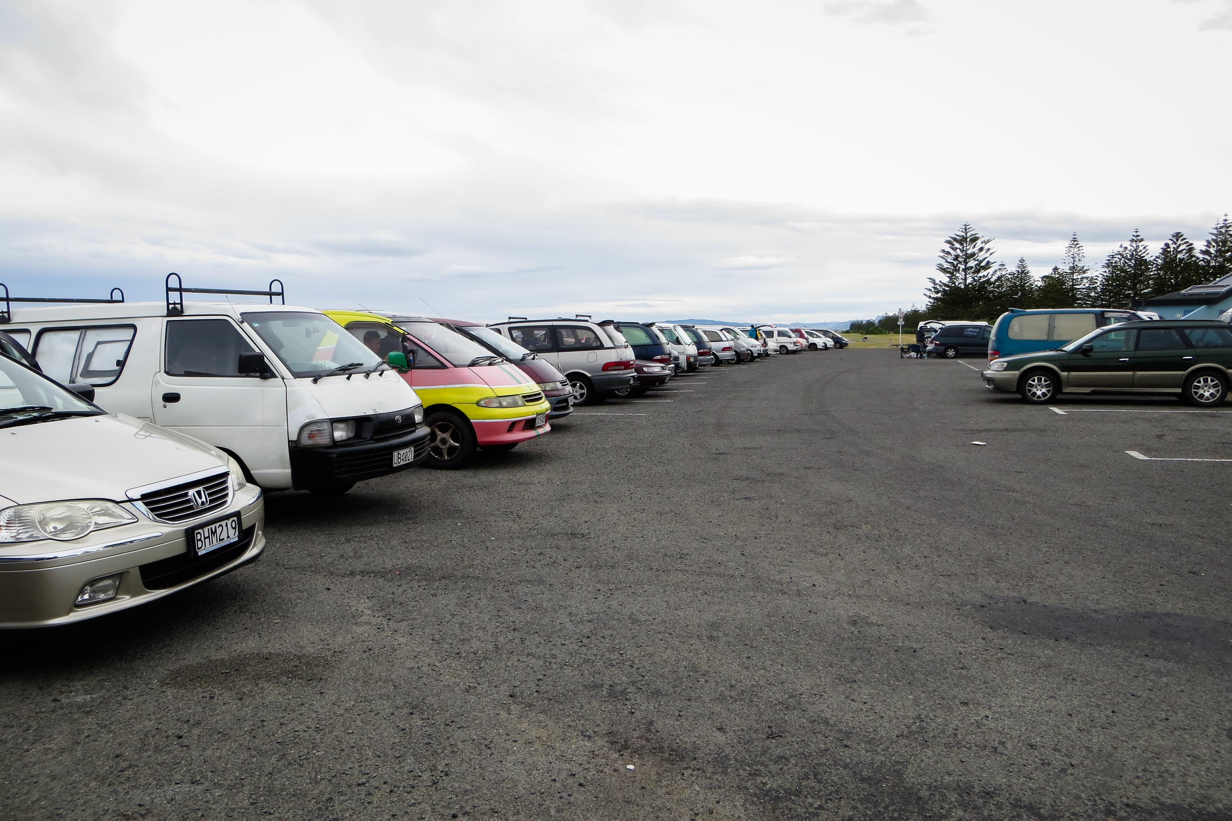 Doch als ich das erste Mal in meinem Auto auf dem kostenlosen Campingplatz Foreshore Reserve Freedom Camping an Napiers Uferpromenade übernachtete, sah das schon anders aus. Es war ein Parkplatz, der für knapp fünfzig Fahrzeuge ausgelegt und jeden Tag schnell gefüllt war. Die Stimmung glich einem Musikfestival: Am Strand wurde ein Lagerfeuer gemacht, irgendjemand spielte Gitarre, es lief Musik und natürlich wurde viel Bier getrunken und hin und wieder gepöbelt. Als dann in der Nacht mein Auto so doll wackelte, dass meine Lichterkette klirrend ans Fenster schlug, dachte ich zuerst, irgendeine betrunkene Gruppe rüttle an meinem Auto. Und ich wollte mich schon lautstark beschweren, als ich dann feststellte, dass draußen niemand war. Ok, das musste wohl ein Erdbeben gewesen sein, gestand ich mir ein und schlief weiter. Doch keine zwei Stunden später kam ein Auto der Küstenwache mit einem Megafon und forderte alle Autos auf sofort zu verschwinden, denn mit dem Erdbeben kam eine Tsunamiwarnung einher. Es dauerte keine zwanzig Minuten und der Parkplatz war leer. Auch ich musste meine Platz räumen und suchte mir im landeinwärtigen Stadtteil Napiers einen Schlafplatz für die restliche Nacht. Damit war das Erdbeben das Hauptgesprächsthema meines letzten Arbeitstages in der Restaurantküche.