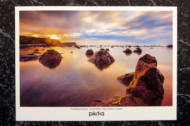 Die Bezeichnung „petrified forest“ heißt sowiel wie „versteinerter Wald“ und dieser Ort war einer der Hauptsehenswürdigkeiten in den Catlins. Für mich war es eine willkommene Herausforderung, die genaue Perspektive der Postkarte zu finden. Bei den zahlreichen fossilen Baumstümpfen an dem Küstenstreifen schien es kein leichtes Unterfangen.