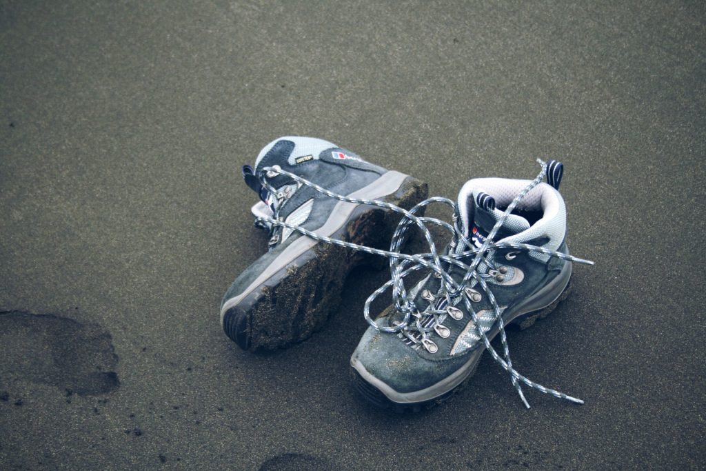 Wanderschuhe am Strand